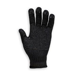 Luva de segurança tricotada em fios de algodão e poliéster, palma e face palmar dos dedos com pigmentos antiderrapantes de PVC, extremidade dos dedos com reforço de borracha de PVC. Punho com elástico, com acabamento em overloque.